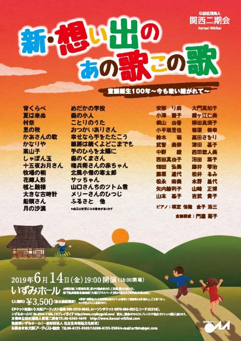2019.06.14 研究者情報 新・想い出のあの歌この歌に桐山由香先生が出演します。 「新・想い出のあの歌この歌」(主催:公益社団法人関西二期会)に本学教員の桐山由香先生が出演します。 ご興味のある方、ご都合があいましたら、どうぞお立ち寄りください。 一覧に戻る