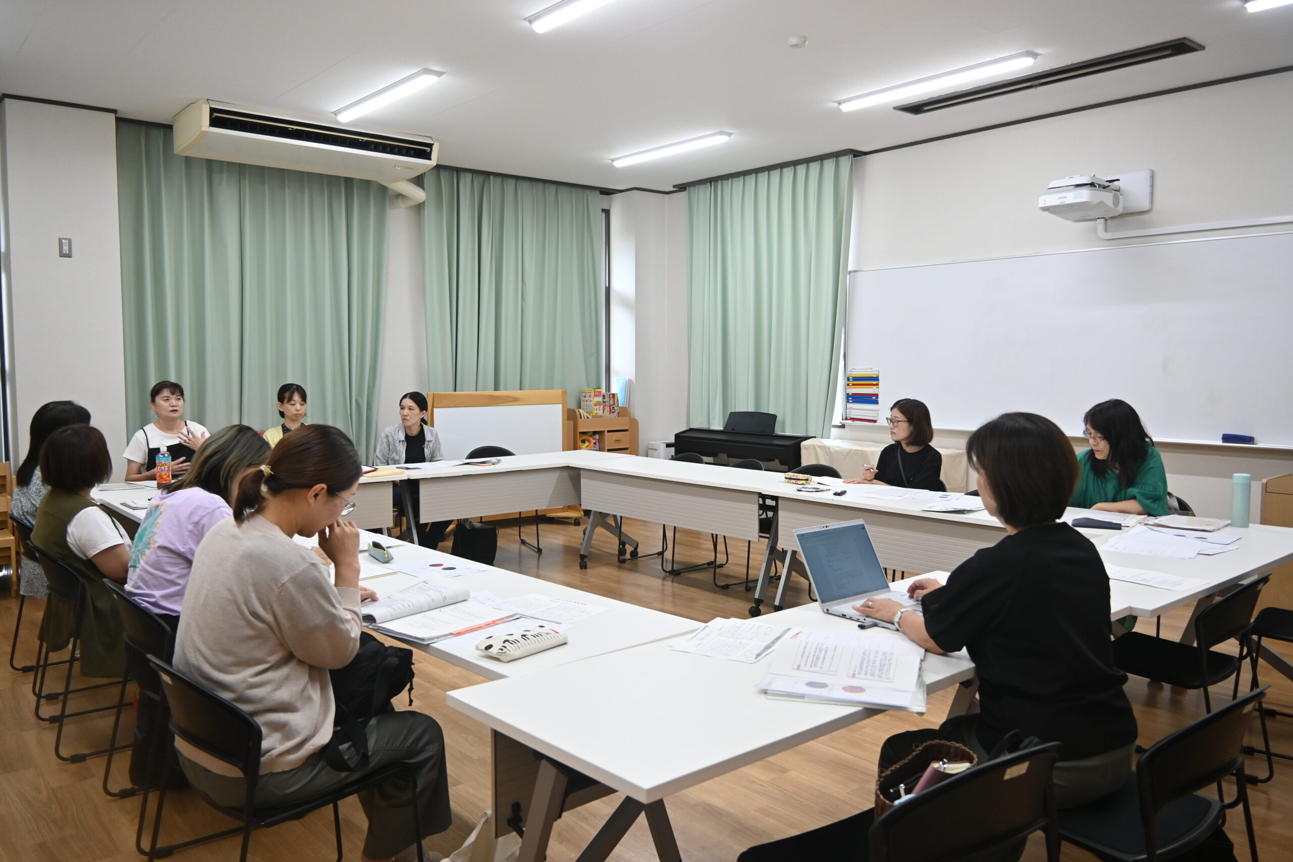 2025年9月26日(金)本学にて、すくのび応援隊研修会が行われました。すくのび応援隊は、「子育て支援ネットワークすくのび」のメンバーである地域子育て支援拠点の支援者を支援し子育てを支えることを目的に、きょう育の和センターの社会貢献の一環として活動しています。本日は、前回研修会(和歌山大学教育学部准教授の越野章史氏による「『子どもの権利』視点で見る、日本の子どもたちの現状」での学びを振り返り、すくのび応援隊の皆さんが実際に感じていることや実体験等も含めた、活発な意見交換が行われました。