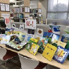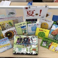 夏にまつわる絵本や紙芝居を集め、図書館に展示しています。「夏」「海」「みずあそび」「花火」「熱中症」等をテーマに選書しました。梅雨明けすぐに夏本番のような暑さが続いていますが、図書館で涼みながら手に取ってみてください。