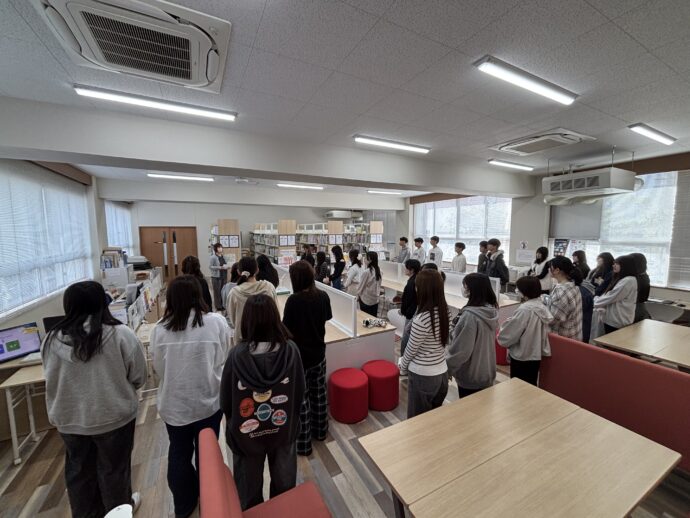 2026.04.23 図書館 1年生の図書館ガイダンスを実施! 今年度も2026年4月20日(月)に教職基礎ゼミナールの中で、2クラスに分かれて図書館ガイダンスを行いました。1年生のみなさんは図書館の使い方の説明を聞き、各自のスマホ等を使い資料の検索と図書の貸出を体験しました。 一覧に戻る