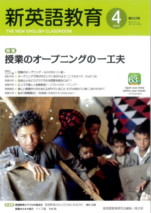 2022.03.30 研究者情報 『新英語教育』4月号に辻伸幸准教授の執筆「リアルな言語活動を求めて」が掲載されました。 『新英語教育』4月号に辻伸幸准教授の執筆「リアルな言語活動を求めて」が掲載されました。 2021年に実施した和歌山県紀の川市立麻生津小学校での日豪小学校間国際交流活動について執筆しました。 一覧に戻る