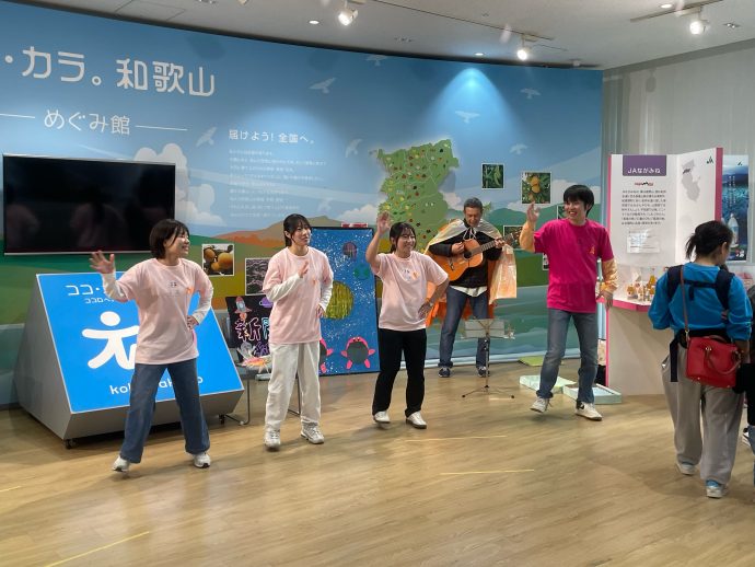 「カメの遠足」を歌ったり「サンサン体操」を学生スタッフも踊りました。