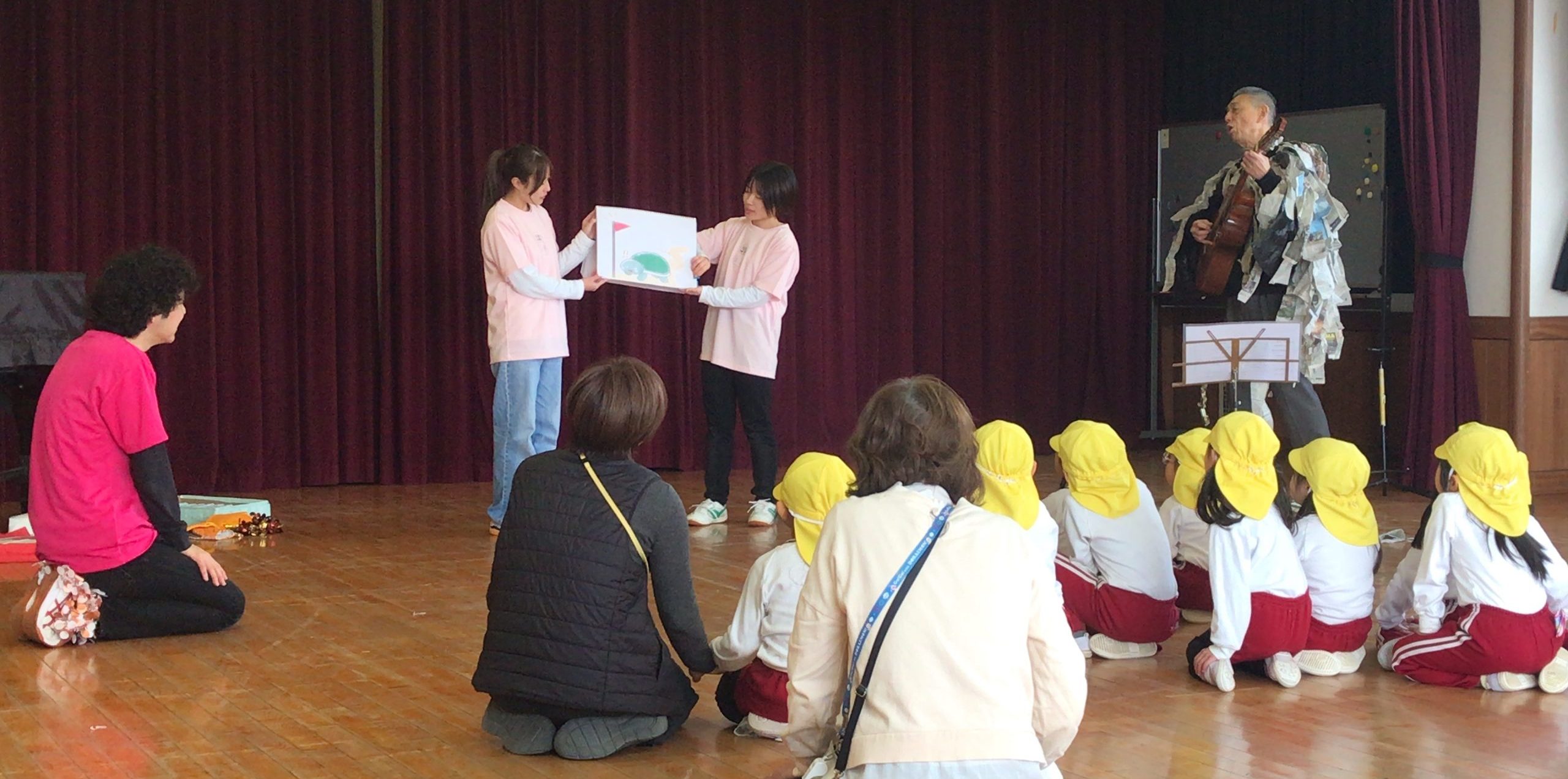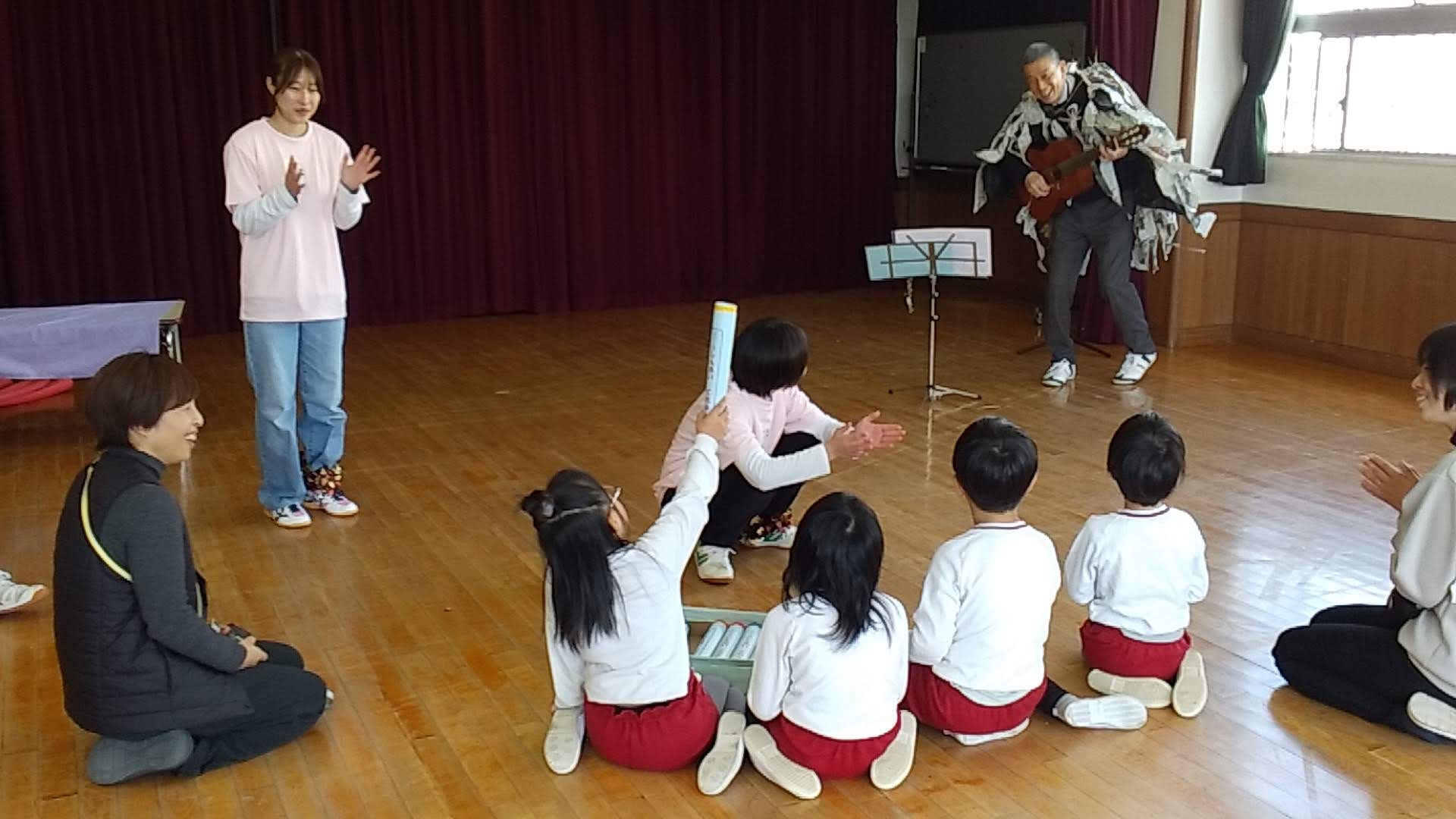 2025年2月26日(水)、八代健志准教授とだるまフレンズの学生3名が、和歌山市立宮前幼稚園で、歌と音楽の集い「宮前幼稚園プロジェクト」を開催しました。