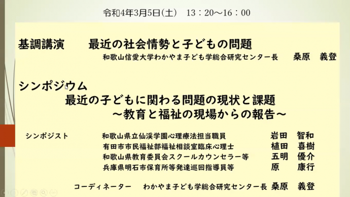 わかやま子ども学総合研究センターシンポジウム(動画)(令和4年3月5日)
